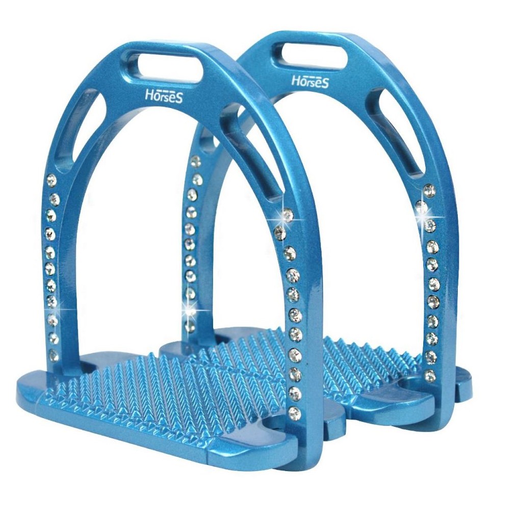 Staffe Horses inglesi in alluminio con Strass. Le staffe realizzate in alluminio offrono una lunga durata nel tempo, inoltre sono leggere ed abbellite da strass. Vendute a coppia.
