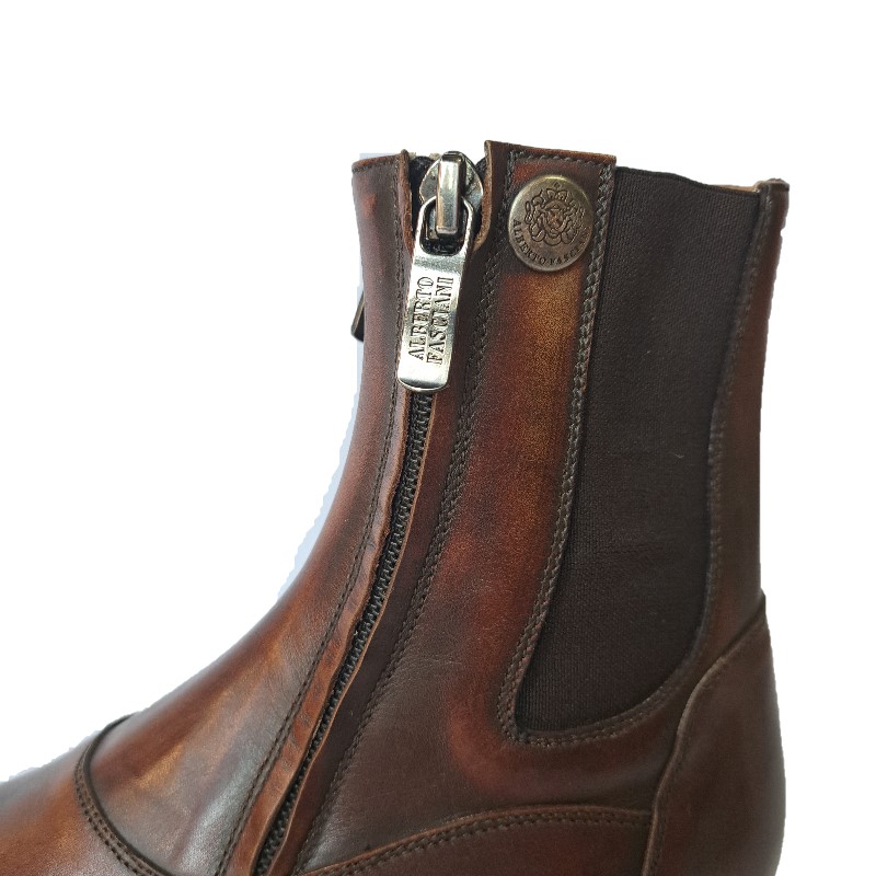 Stivaletti Inglesi Alberto Fasciani in pelle lucida con 2 zip frontali ed inserti elastico nei laterali. Suola in gomma antiscivolo. Realizzati con Lavorazione MADE ITALY.