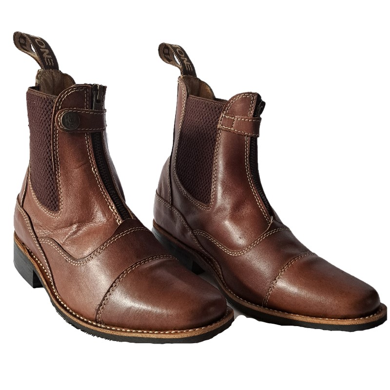 Stivaletti Inglesi in Cuoio con Zip anteriore ed inserti elastico. Gli stivaletti sono realizzati in cuoio di qualità superiore e grazie alla zip anteriore offrono un’ ottima comodità durante il loro utilizzo. La suola in cuoio con rinforzo in gomma antiscivolo garantiscono un’ ottima aderenza. Cuciture a contrasto e chiusura con bottone.
