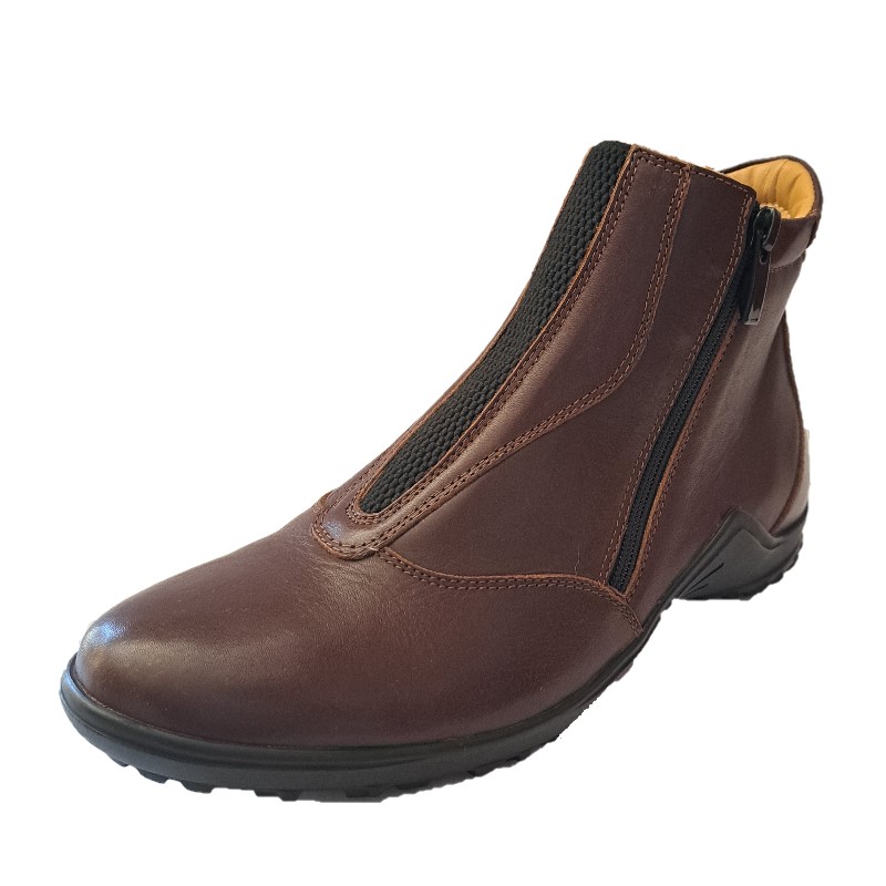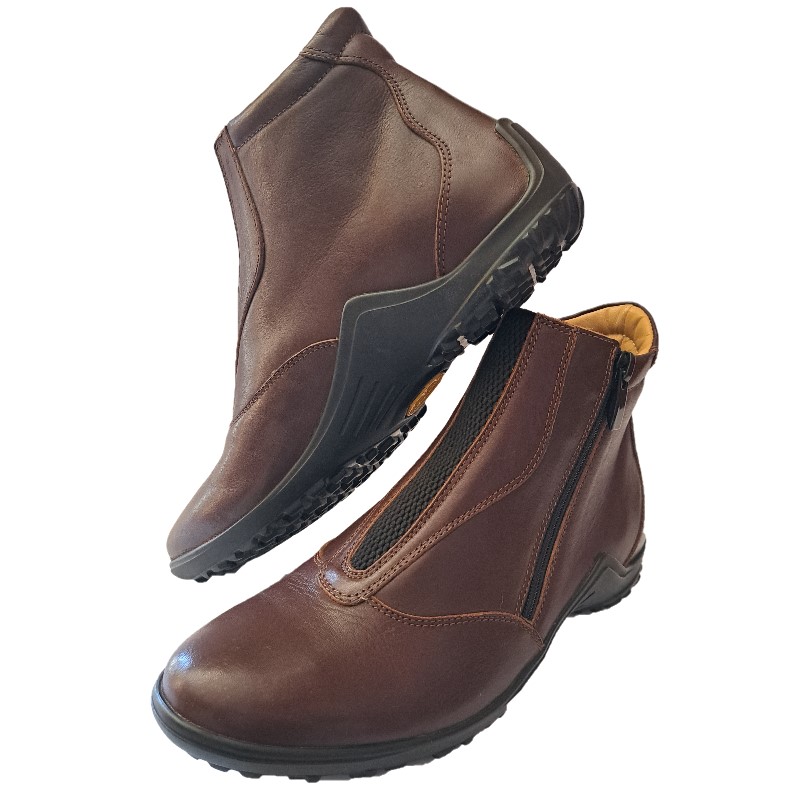 Stivaletto in cuoio modello Sport con chiusura a zip laterale, fodera traspirabile sul collo del piede. Lavorazione e cuciture artigianali MADE ITALY. Suola VIBRAM antiscivolo.