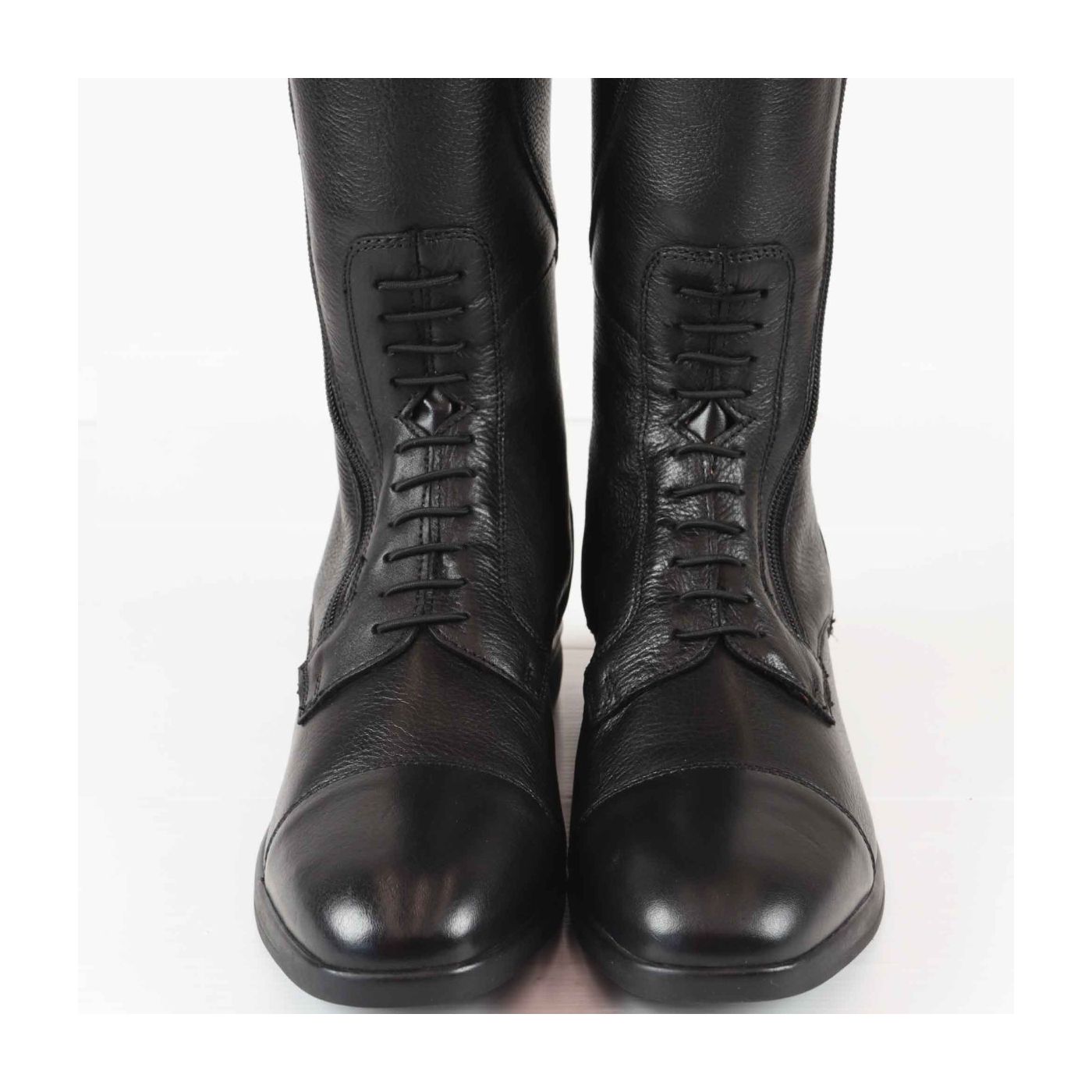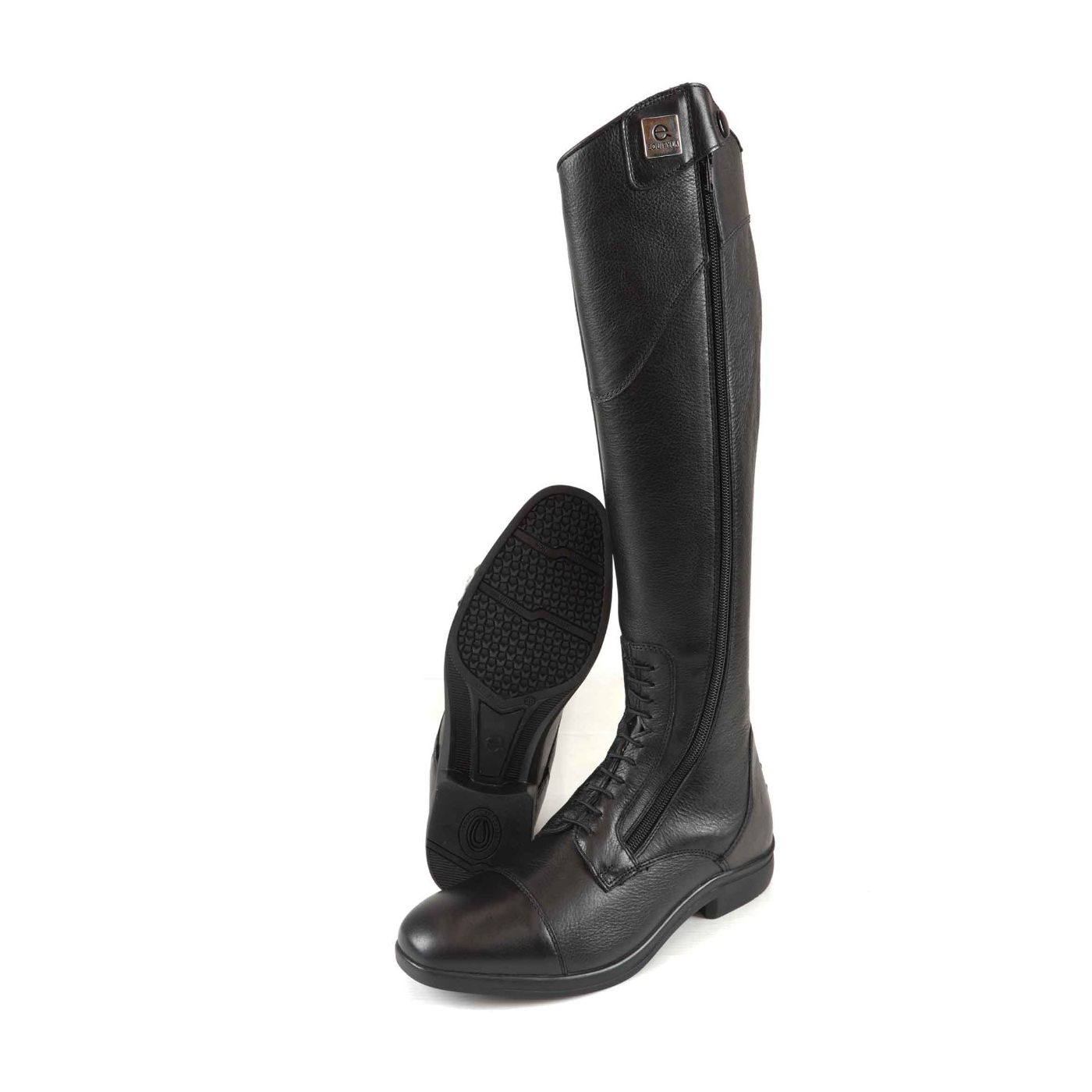 Stivali Inglesi Equityum modello Basilea realizzati in morbida pelle per offrire il massimo comfort durante gli Allenamenti ed i Concorsi. Gli stivali hanno una chiusura con Zip laterale obliquo in modo tale da rendere più agevole la chiusura dello Stivale. Suola in gomma antiscivolo e tacco ammortizzante. Lo stivale offre eleganza e comodità allo stesso tempo.