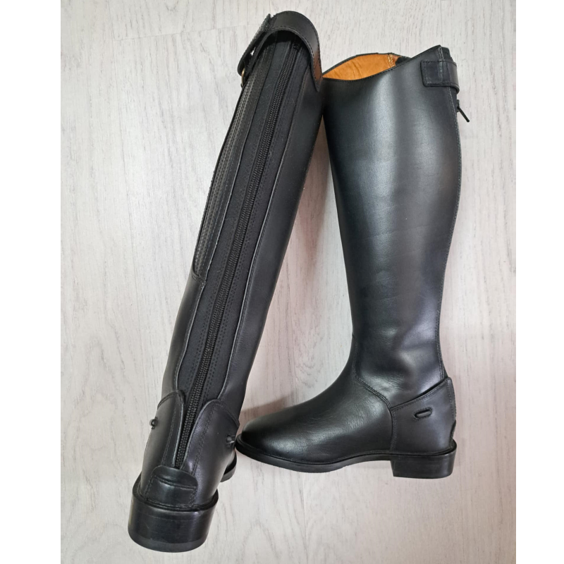 Stivali Inglesi Equicomfort in pelle morbida e traspirante modello da Trekking o da Allenamento con elastico sul polpaccio per offrire un maggiore confort durante l’ utilizzo, porta speroni laterali, chiusura posteriore con zip e suola in cuoio con gomma antiscivolo. Gli stivali sono ideali per il trekking e per gli allenamenti quotidiani.