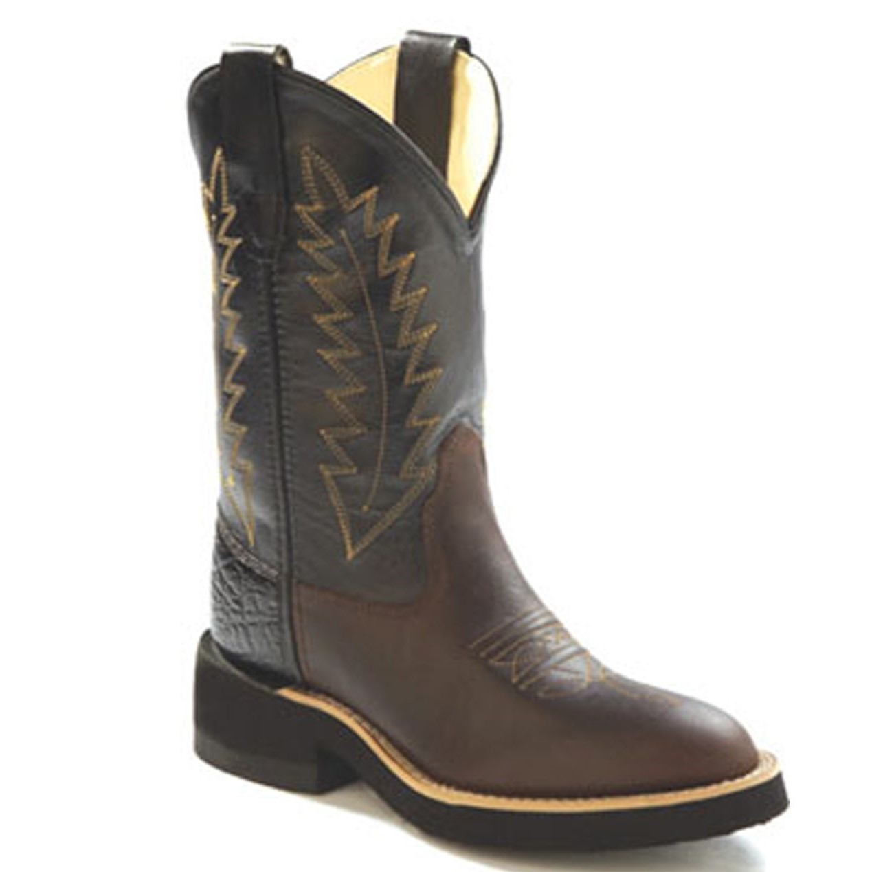 Stivali Western Old West modello 1606Y unisex realizzati in pelle morbida di qualità . Lo stivale offre un vero stile western ideale per l’ equitazione. Colorazione bicolore, suola in gomma antiscivolo e tacco rinforzato. Punta tonda. La parte posteriore ha un rinforzo in modo tale da offrire una maggiore protezione al tallone dalla pressione dello sperone.