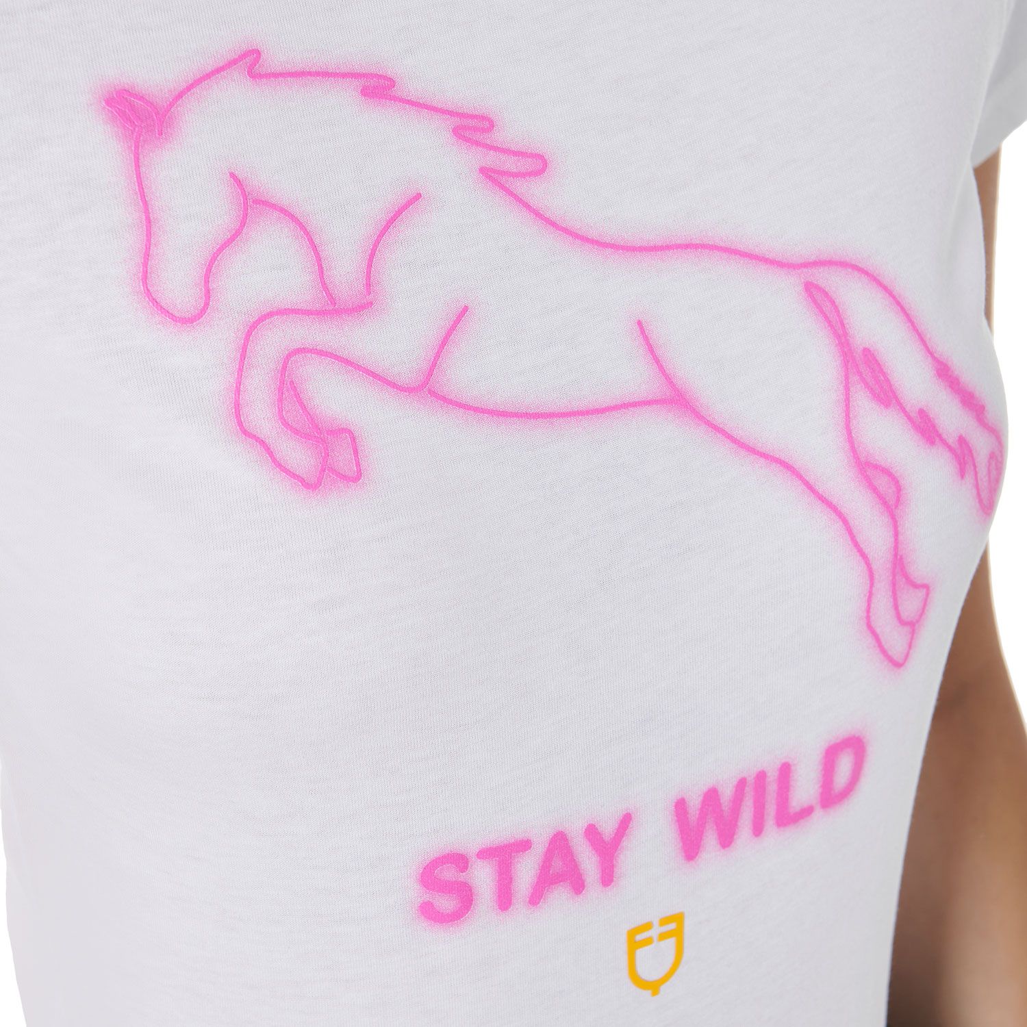 T-shirt donna Equestro slim fit in morbido cotone a mezza manica, ideale per i periodi caldi in quanto agevola l’evaporazione e la dispersione del sudore. La T-shirt con una decorazione sul petto Fucsia.