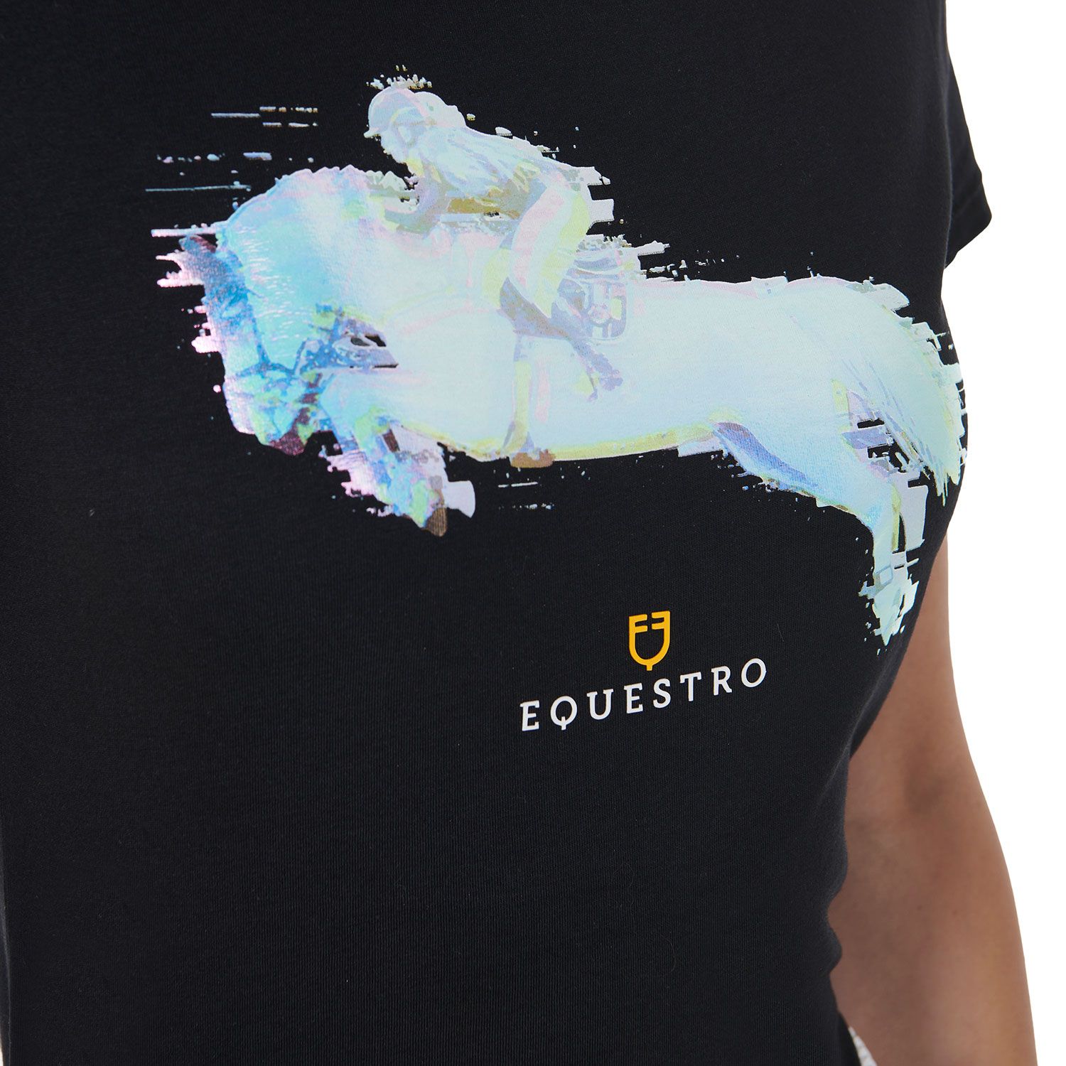 T-shirt donna Equestro slim fit in morbido cotone a mezza manica, ideale per i periodi caldi in quanto agevola l’evaporazione e la dispersione del sudore. La T-shirt con una decorazione sul petto.