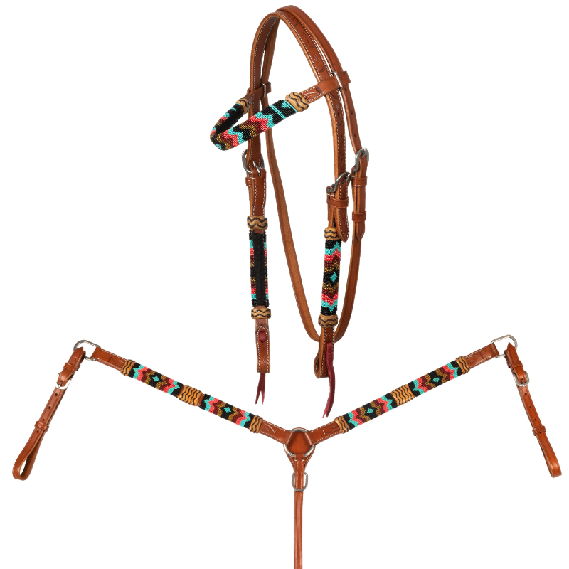 Testiera e Pettorale Western Pool’s con Decorazioni Shade realizzato in cuoio superiore.