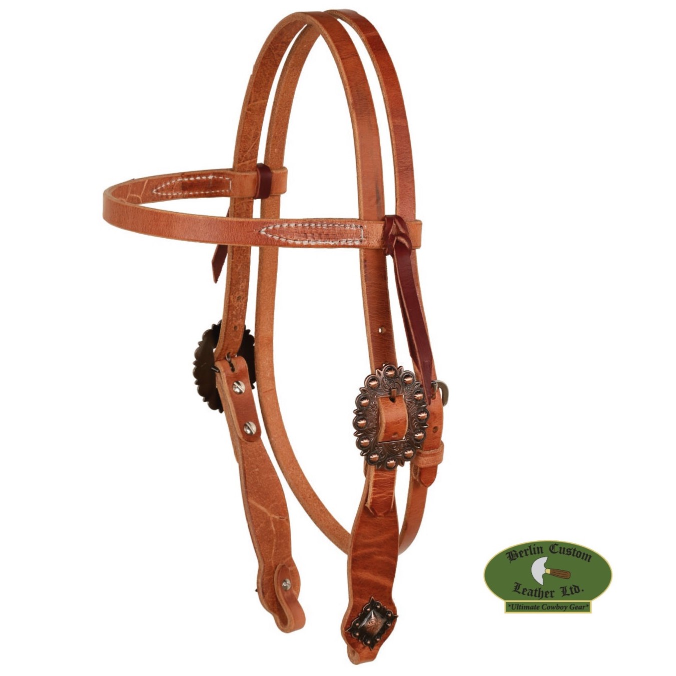 Testiera Western BERLIN CUSTOM in cuoio ingrassato HERMANN con fibbia diamantata in rame e conchos.
