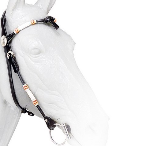 Testiera Western in cuoio tubolare con fiocco sul frontalino e riporti in rawhide.